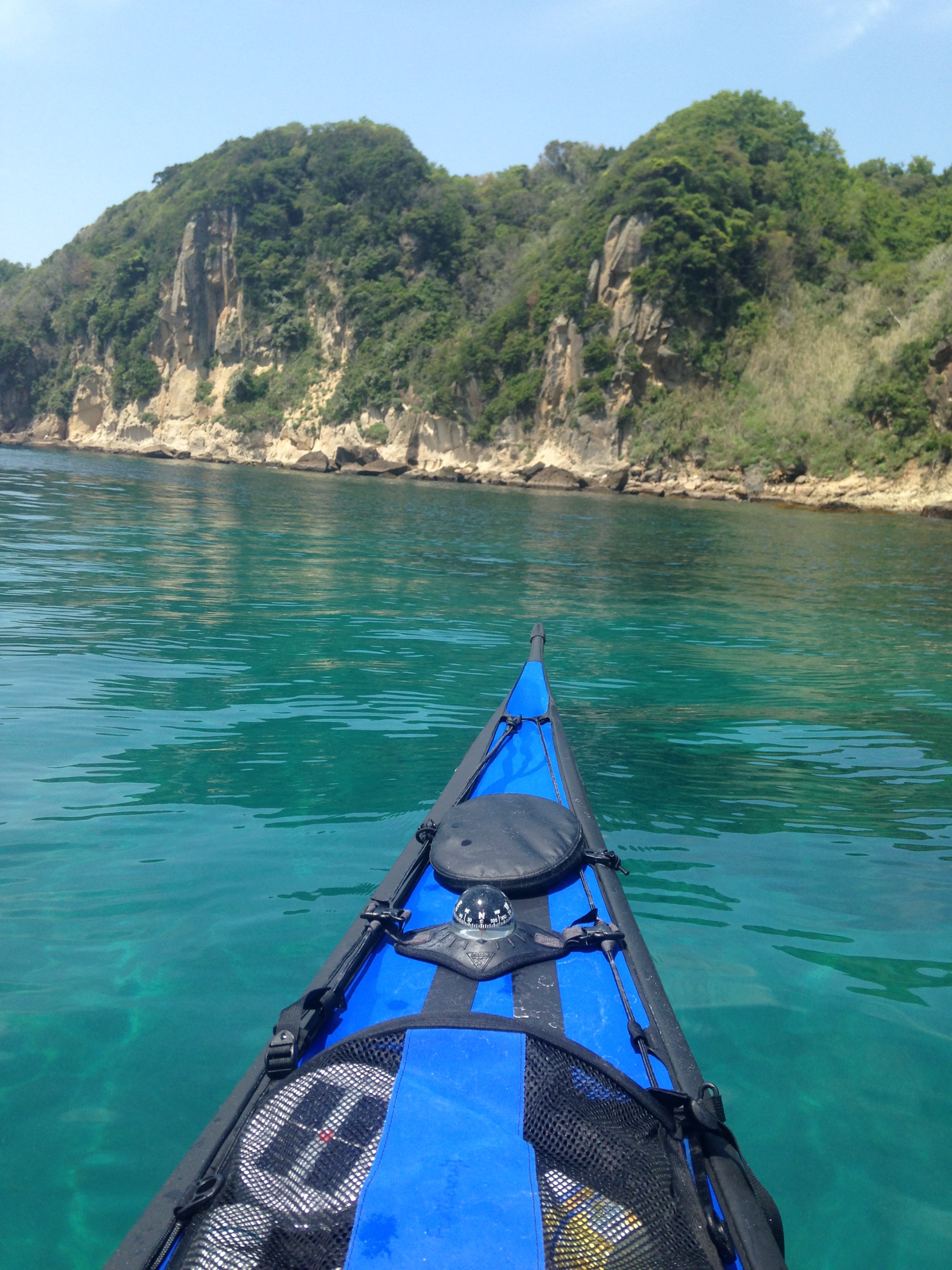 ちょっと漕いで行くと、水の色はコバルトブルーになって益々ヨロシイ。