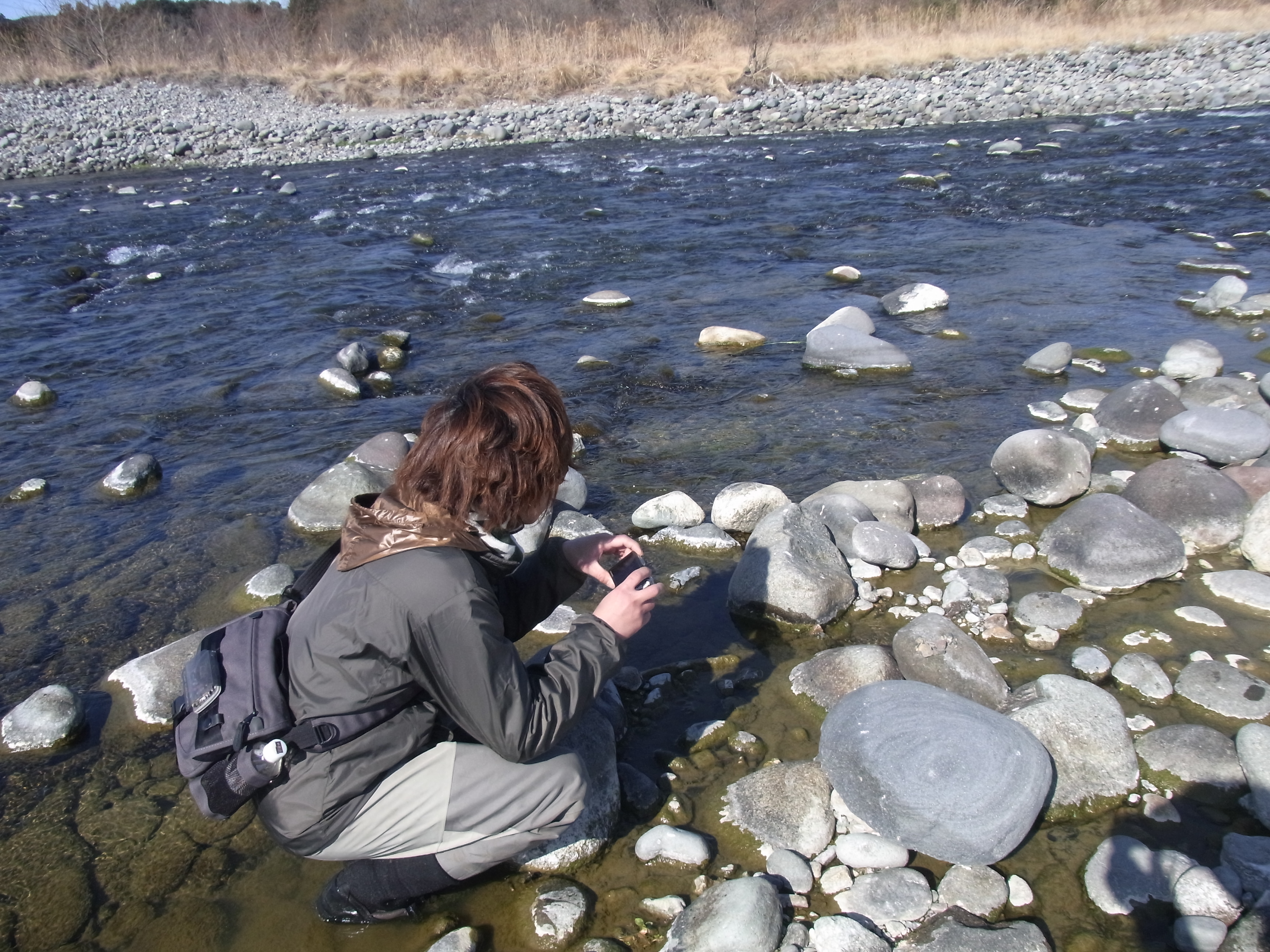 偵察日和の一日 投稿日時: 2013年2月13日 投稿者: marutaka 昨日はSugar君と偵察に行ってきました。 もうすぐ二児の父となる予定であるというのに、川を覗き込んでブツブツと呟いております。 極端に水が少ない状況ですね。多分30~50㎝は少ないように感じます。 水が無い場所でも、ヒゲナガの巣の跡が随分見つかりました。 シーズン中以上に、異常に執念を燃やしているようです…? その男が川面を見つめておりますが… ライズ発見! いい歳して、狂喜乱舞の鬼怒川の一日となりました。 今年は日中のライズに、沢山巡り合えるとイイのである。